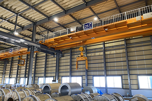 - 多種多様なスリットコイルをお預かりしています。小ロットからの受付、スリットコイル1つからでもご相談ください。25tホイストを備え、大規模な運搬にも対応しています。